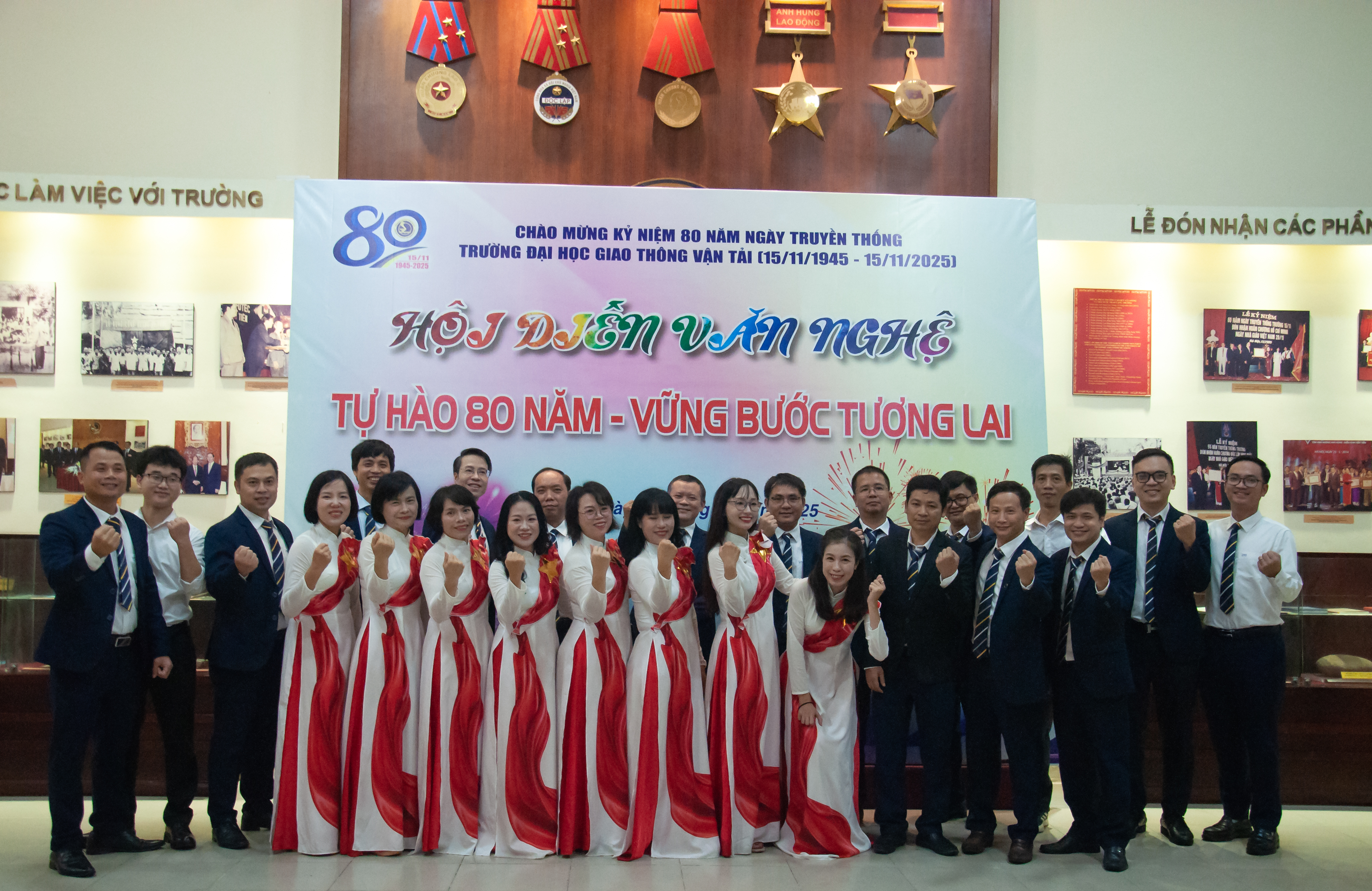 Hội diễn văn nghệ “Tự hào 80 năm – vững bước tương lai” chào mừng 80 năm Ngày truyền thống trường đại học Giao thông vận tải đã diễn ra vào 19 giờ ngày 07 tháng 11 năm 2025, tại Nhà văn hóa. Chương trình này do BCH Công đoàn trường ĐHGTVT tổ chức và là 1 hoạt động trong chuỗi các sự kiện chào mừng 80 năm Ngày truyền thống trường Đại học giao thông vận tải. Tới dự chương trình có PGS.TS. Nguyễn Thanh Chương, BTĐU, CTHĐT; PGS. Ts. Nguyễn Văn Hùng, Hiệu trưởng; PGS.Ts. Lê Hoài Đức Phó Hiệu trưởng, Ths. Phạm Tiến Dũng CT CĐ trường; các đồng chí lãnh đạo các phòng, ban, khoa và các đơn vị trong trường. Đặc biệt là sự có mặt của đông đảo các thầy giáo, cô giáo, các em sinh viên đến từ các đội thi và cổ vũ cho chương trình.
