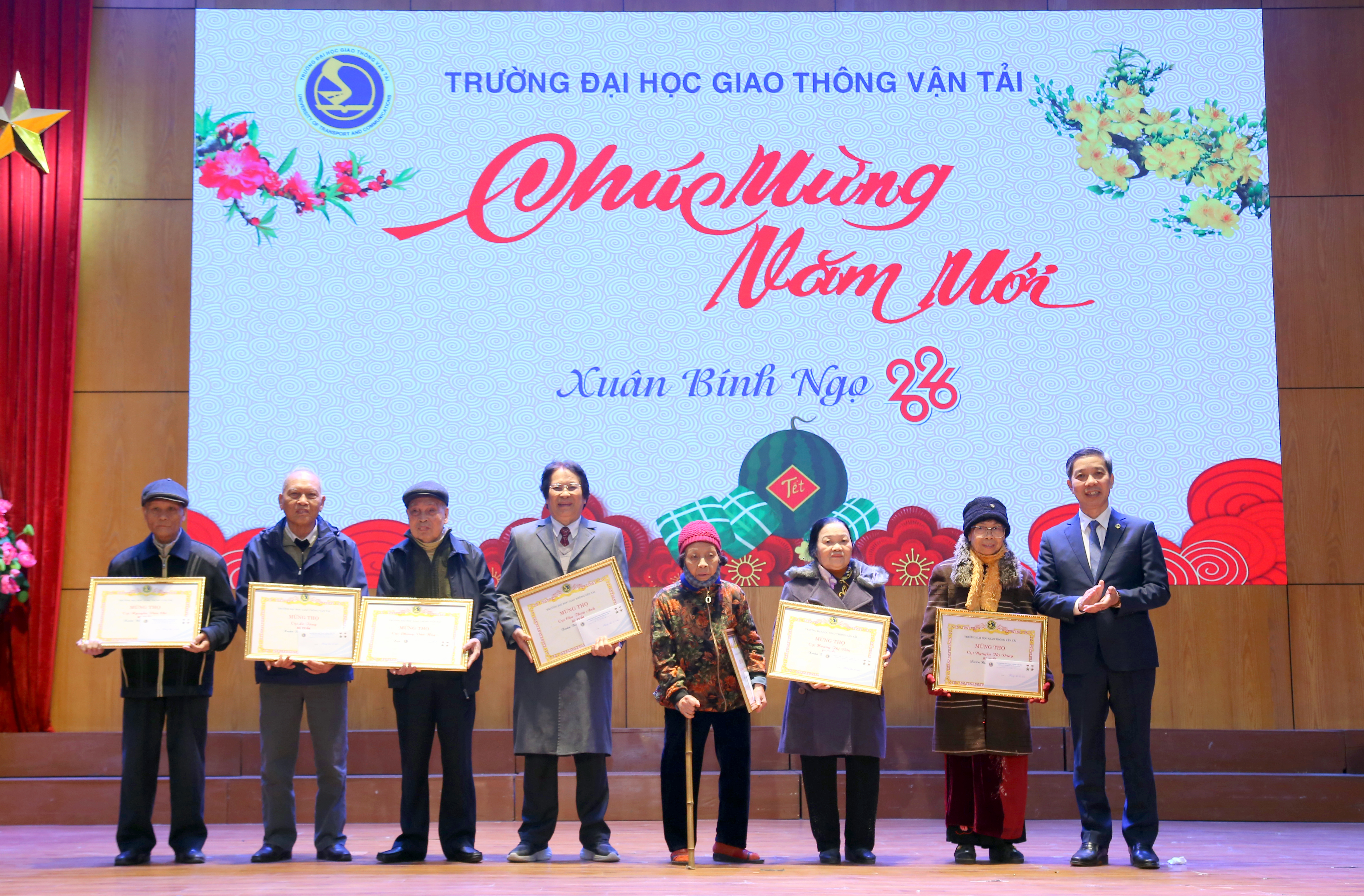 Tại buổi gặp mặt, lãnh đạo Trường Đại học Giao thông vận tải đã trân trọng trao tặng hoa và gửi những lời chúc mừng tốt đẹp nhất tới các cụ cao tuổi, những cán bộ lão thành đã có nhiều năm gắn bó, cống hiến cho sự phát triển của Nhà trường. Năm nay, Nhà trường vinh dự được mừng thọ cho 03 cụ 95 tuổi, 15 cụ 90 tuổi, 13 cụ 85 tuổi, 24 cụ 80 tuổi, 20 cụ 75 tuổi và 06 cụ 70 tuổi.
