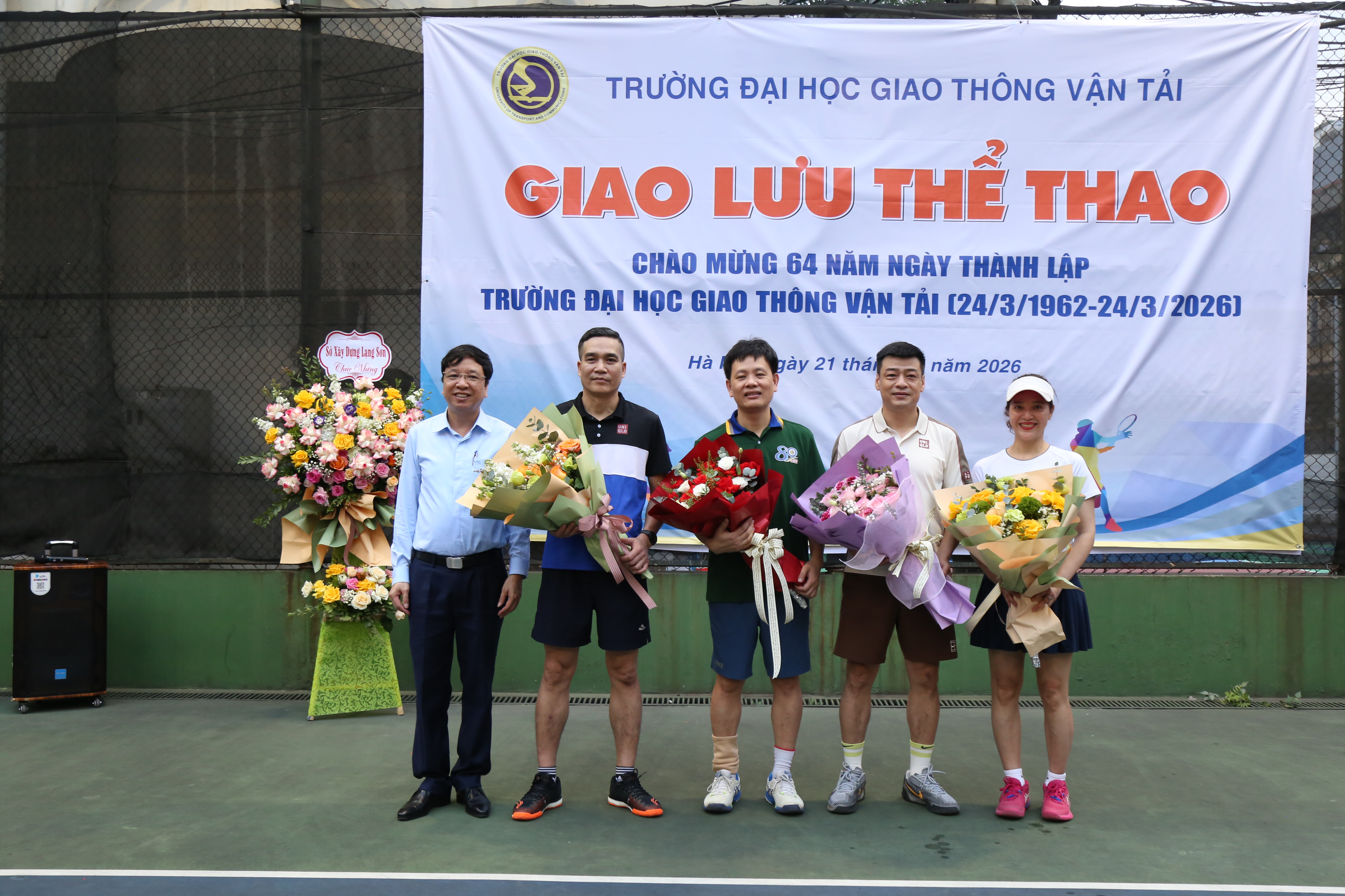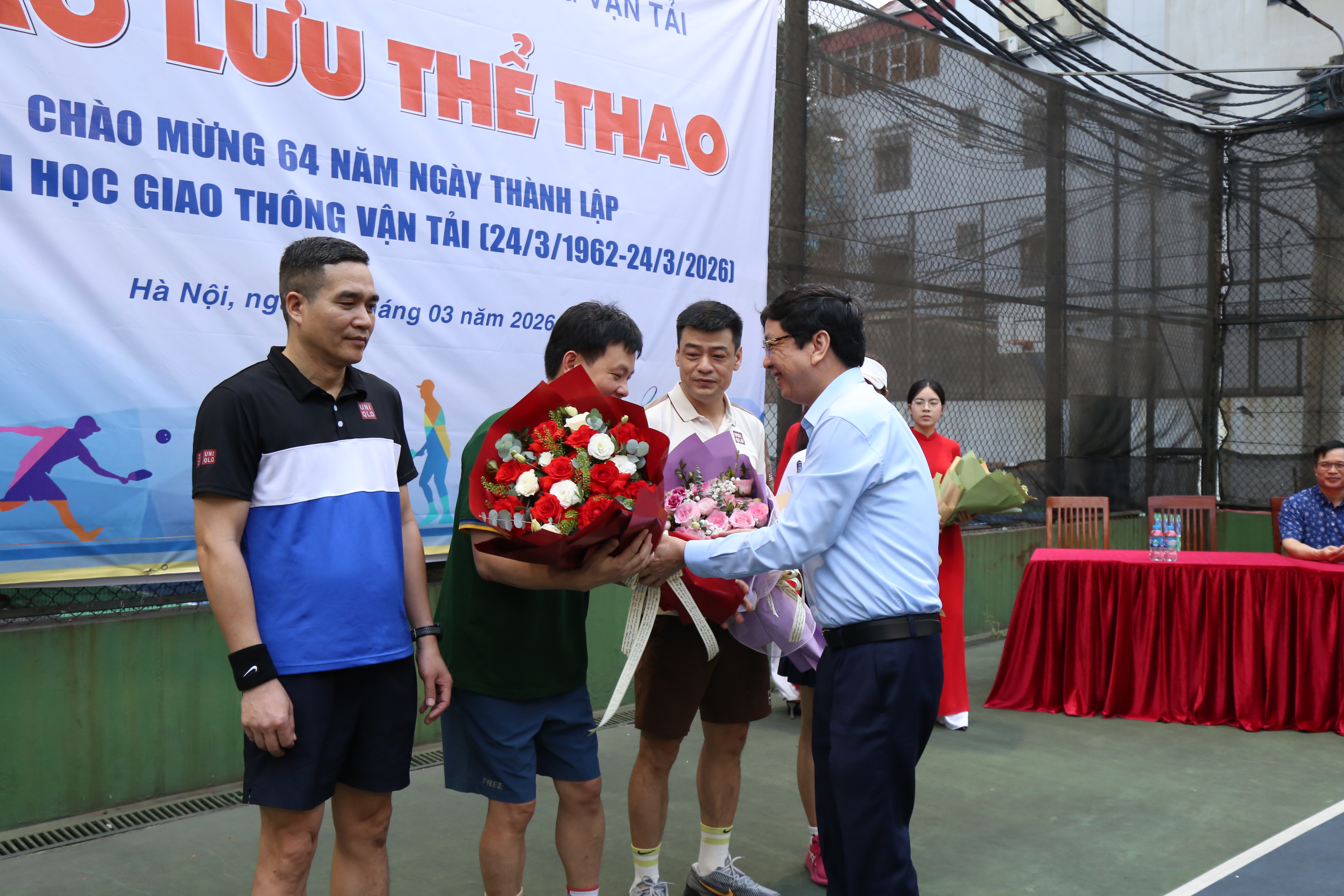 Hà Nội, ngày 21/3/2026 - Không khí rộn ràng, sôi động tràn ngập sân tennis Trường Đại học Giao thông Vận tải trong chiều cuối tuần, khi buổi giao lưu thể thao chào mừng kỷ niệm 64 năm ngày thành lập Nhà trường chính thức khởi tranh.