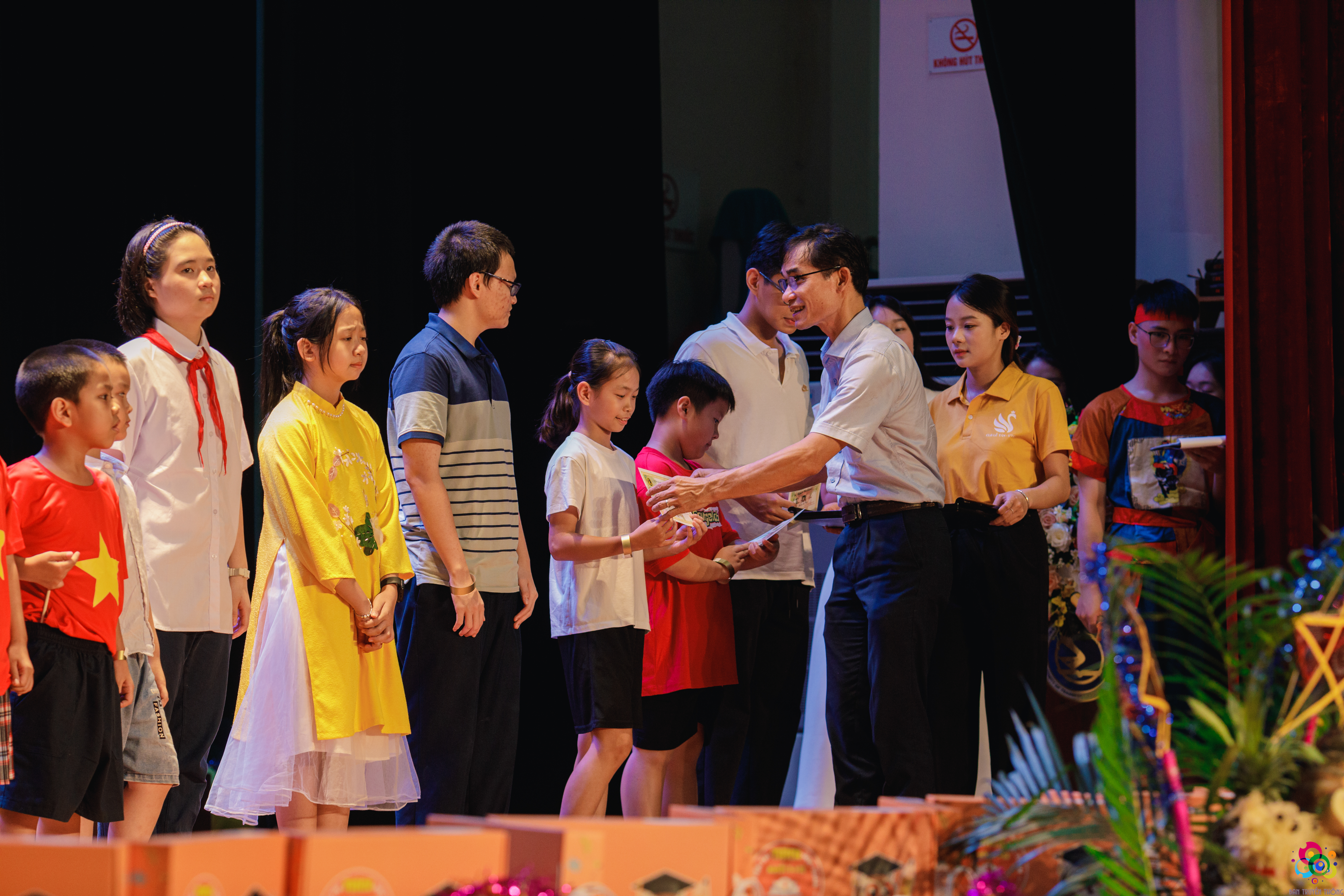 Ngay tại chương trình, đại diện lãnh đạo nhà trường và Công đoàn trường đã trao giấy khen và phần thưởng cho các con có thành tích học tập trong năm học 2024-2025. Các con của CB-NG-NLĐ được nhận giấy khen và phần thưởng là những bạn đạt đạt giải trong kỳ thi Olympic, kỳ thi học sinh giỏi cấp Quận (Huyện) trở lên.